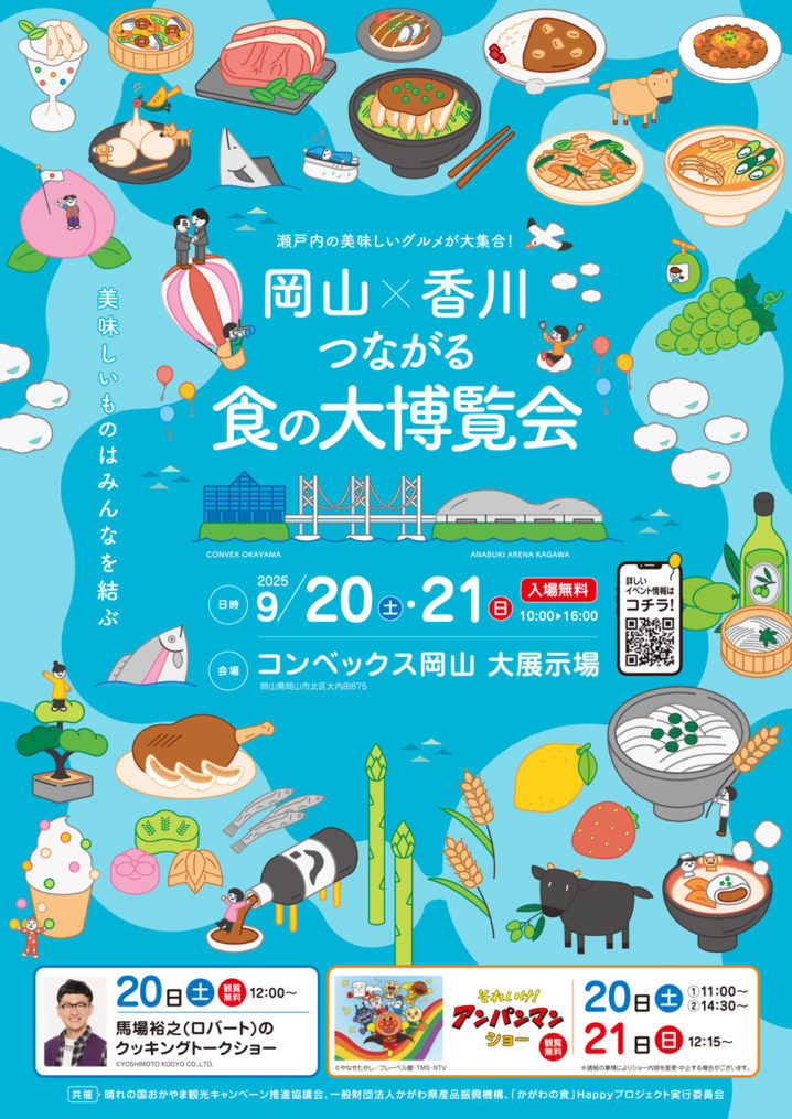 「岡山×香川つながる食の大博覧会」が2025年9月20日(土)、21日(日)にコンベックス岡山で開催されます。