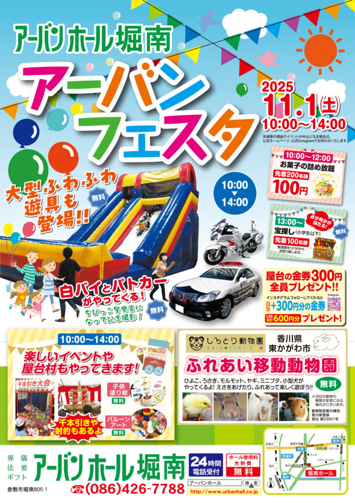 アーバンホール倉敷堀南では、人気イベント「アーバンフェスタ」を開催いたします。