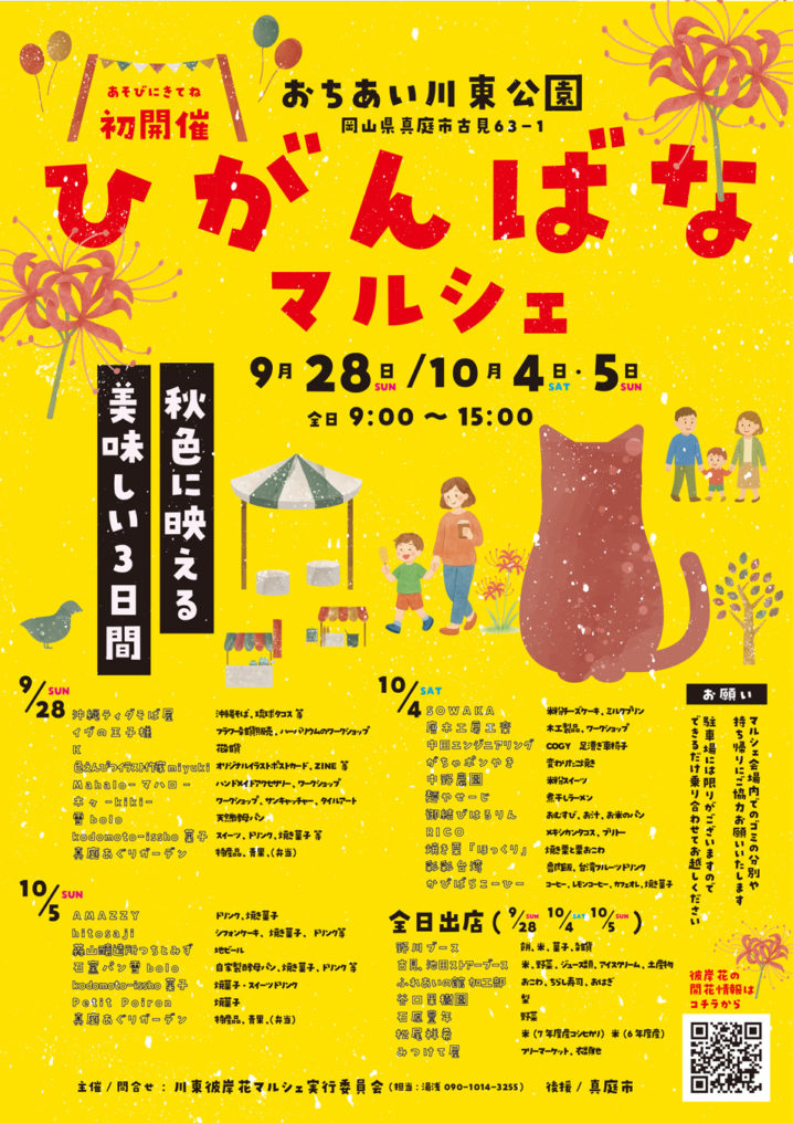 秋色に映える美味しい3日間、岡山県真庭市の落合川東公園で「彼岸花マルシェ」が初開催されます!