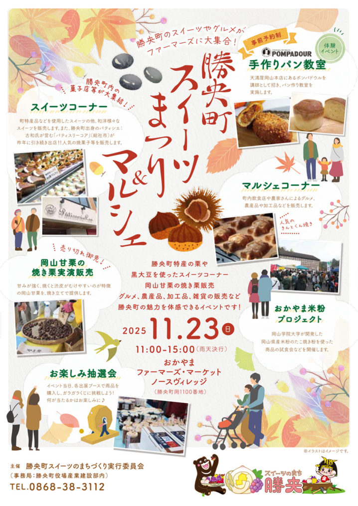 2025年11月23日(日祝)、おかやまファーマーズ・マーケット ノースヴィレッジにて「勝央町スイーツまつり&マルシェ」開催!