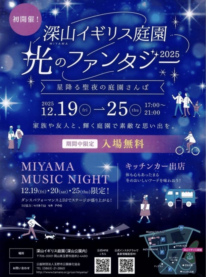 2025年12月19日(金)~25日(木)、深山イギリス庭園(深山公園内)にて、初めてのイルミネーションイベントが開催されます。
